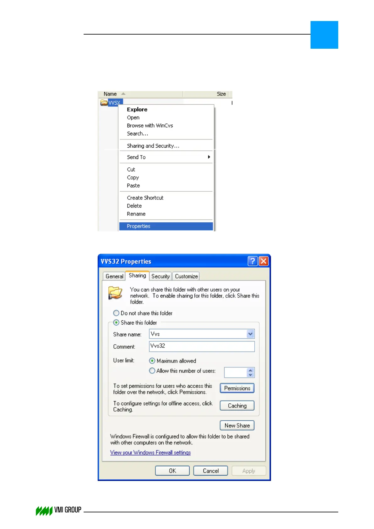 Right mouse-click on the VVSX folder and select the function Properties in the drop-