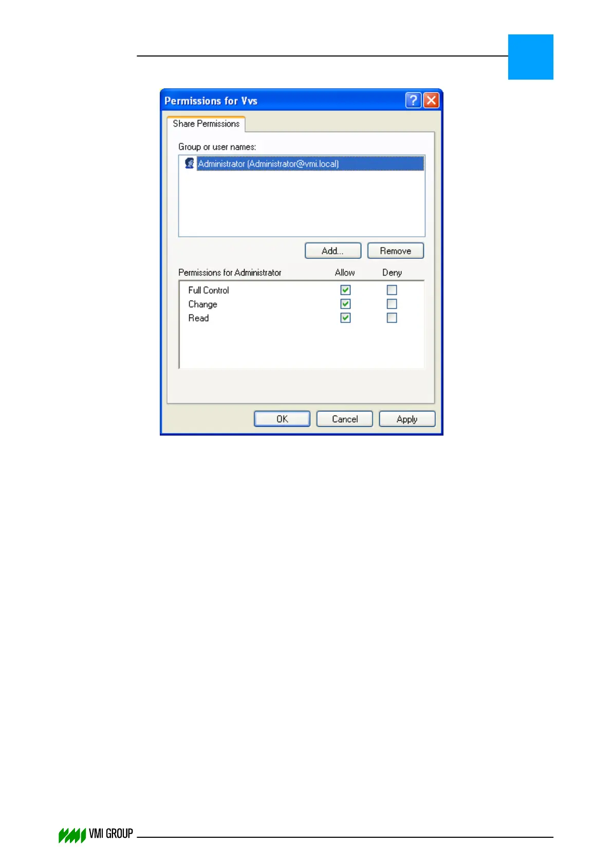 Make sure FULL CONTROL is checked for the account which is used by the VVSU
