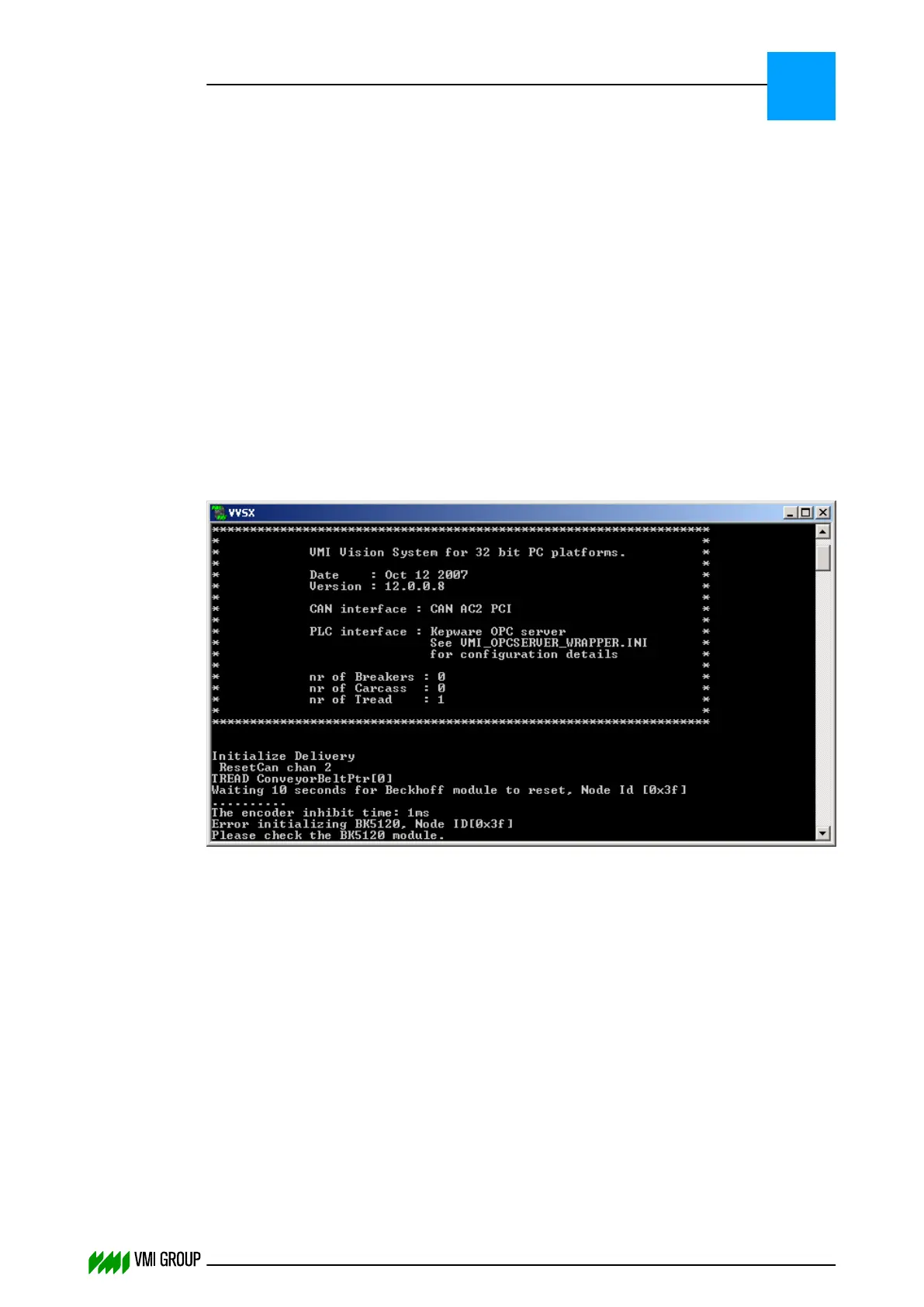 During VVS startup an initialization message is sent to the BK5120 module. After