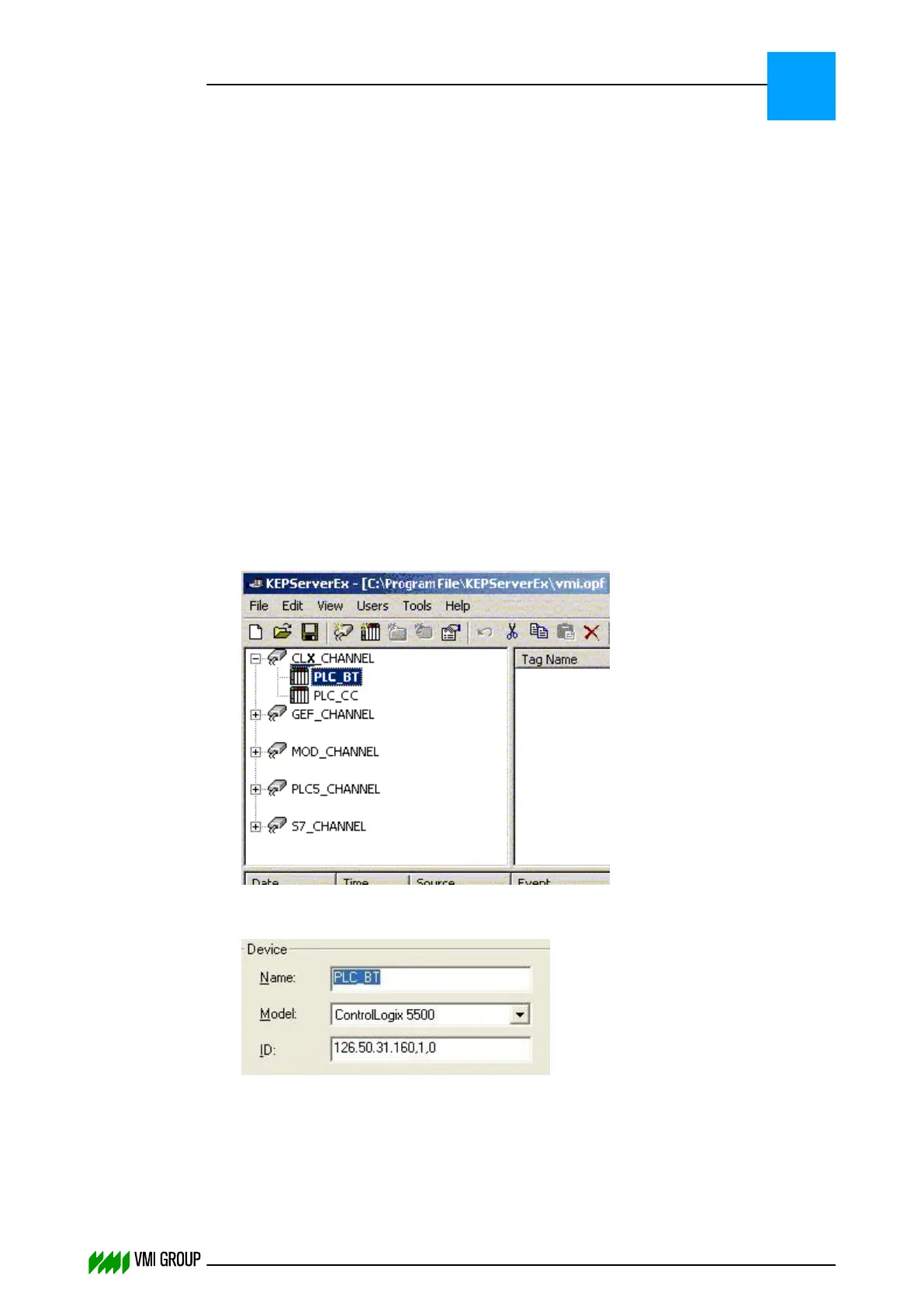 The configuration (type and address) of the OPC Server is stored in the VMI.OPF file.