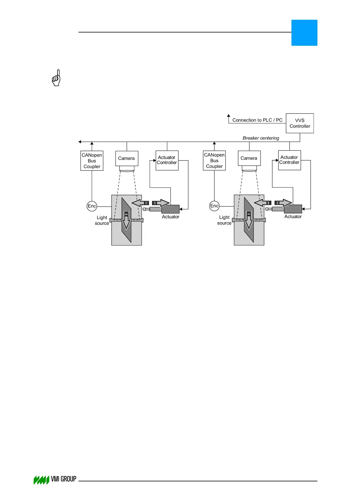 2 VVS cameras measure 4 breaker conveyors with 4 actuators.