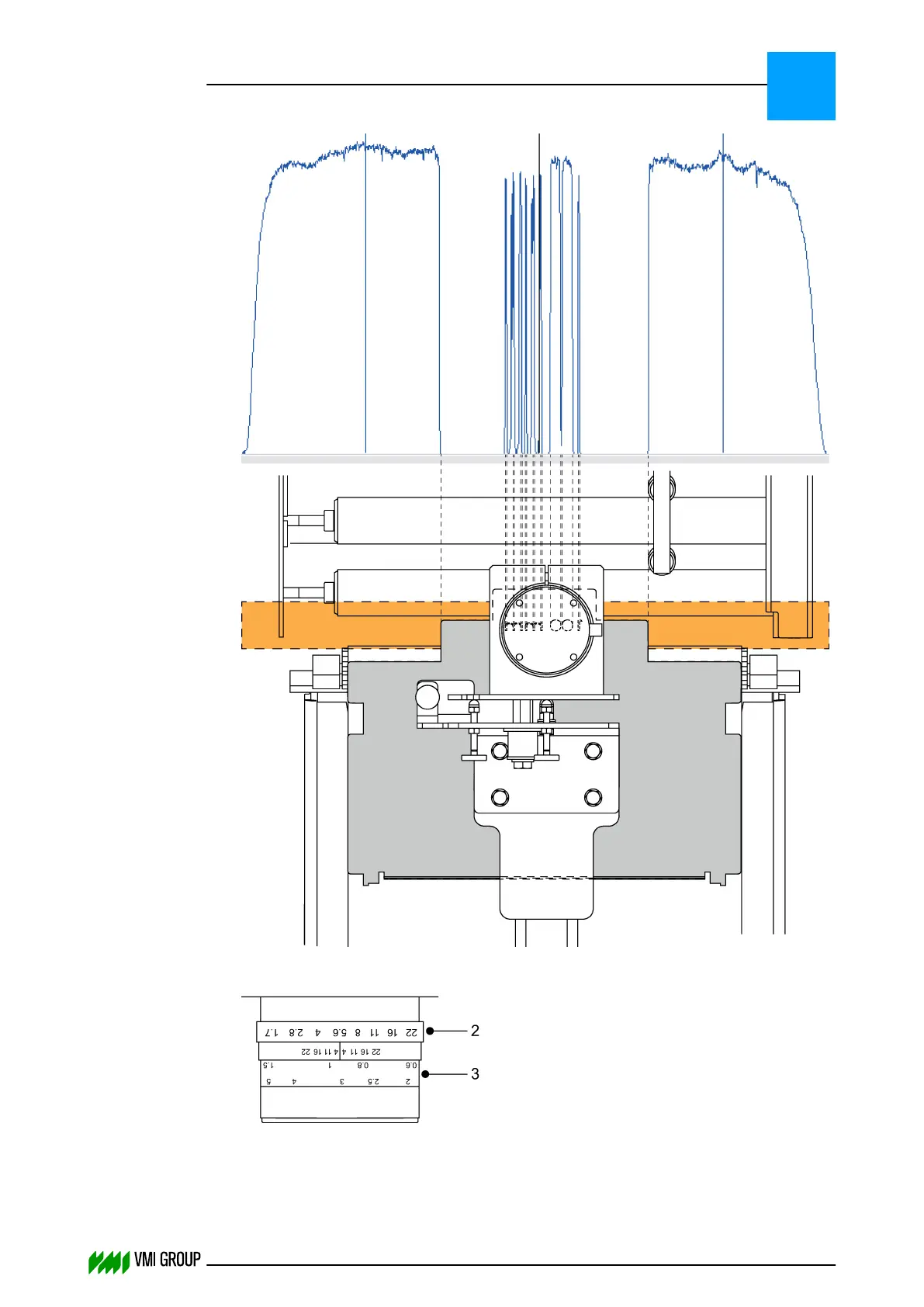 Turn the focus ring [3] until the narrow spikes almost have the same intensity as the