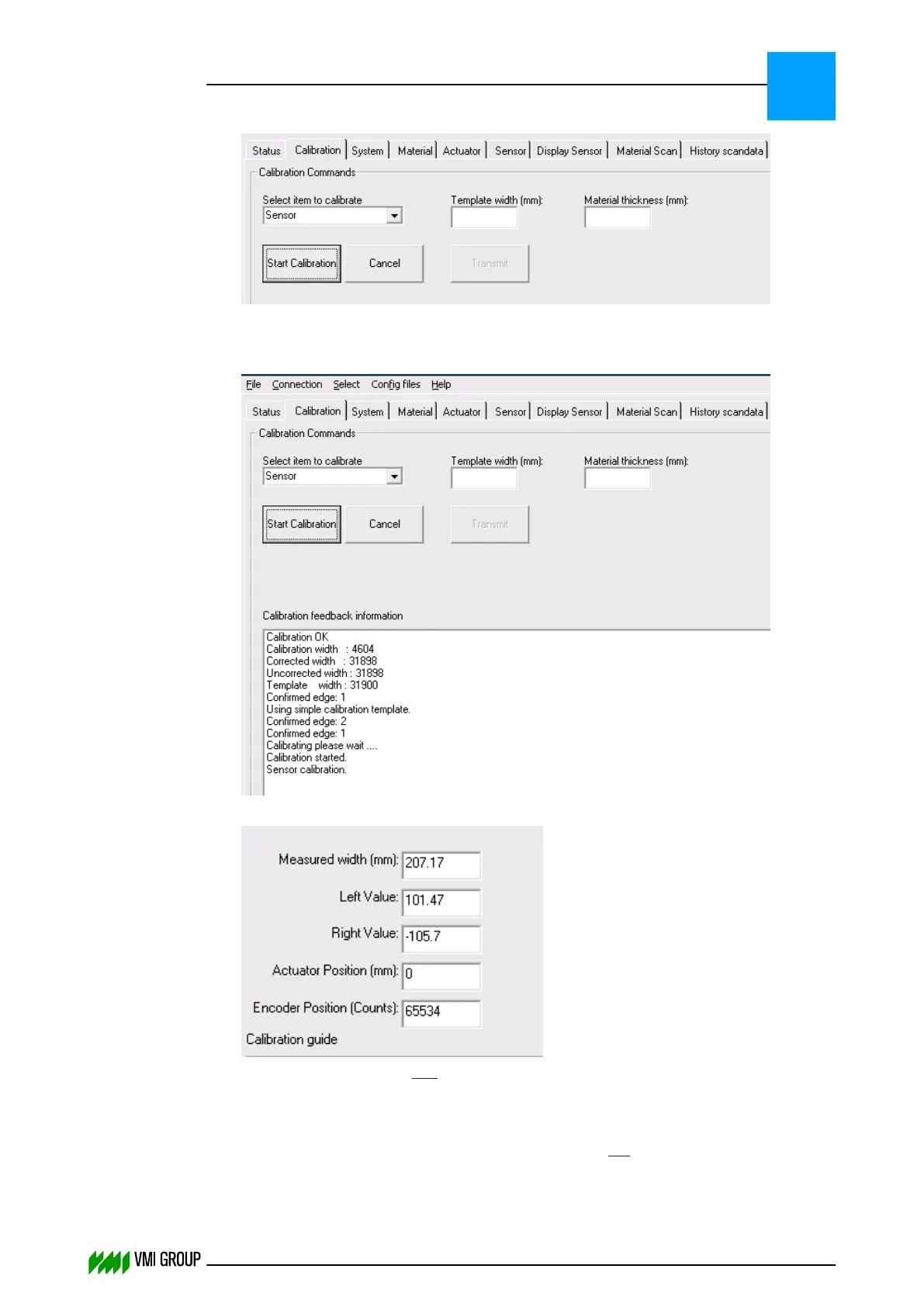 8. Check the CALIBRATION FEEDBACK INFORMATION window for any error during