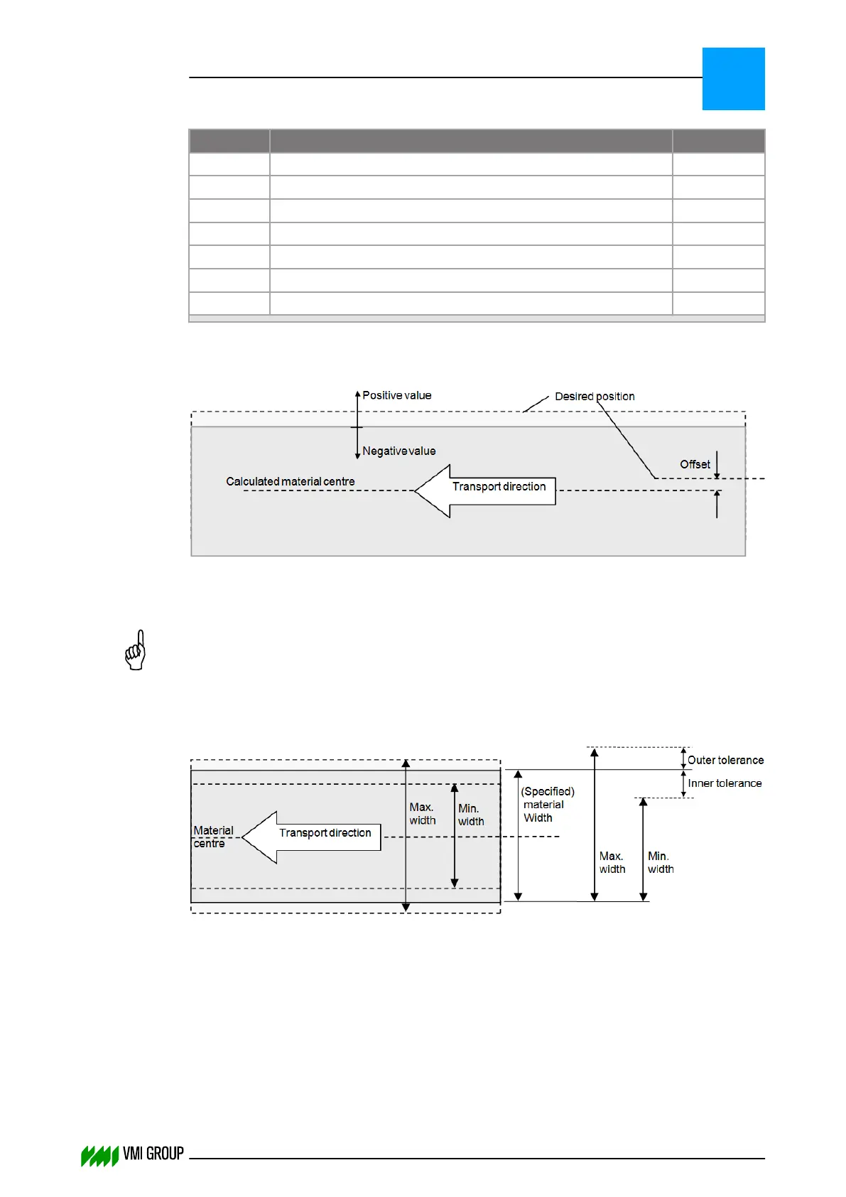 Material width – inner tolerance = minimum allowed material width.