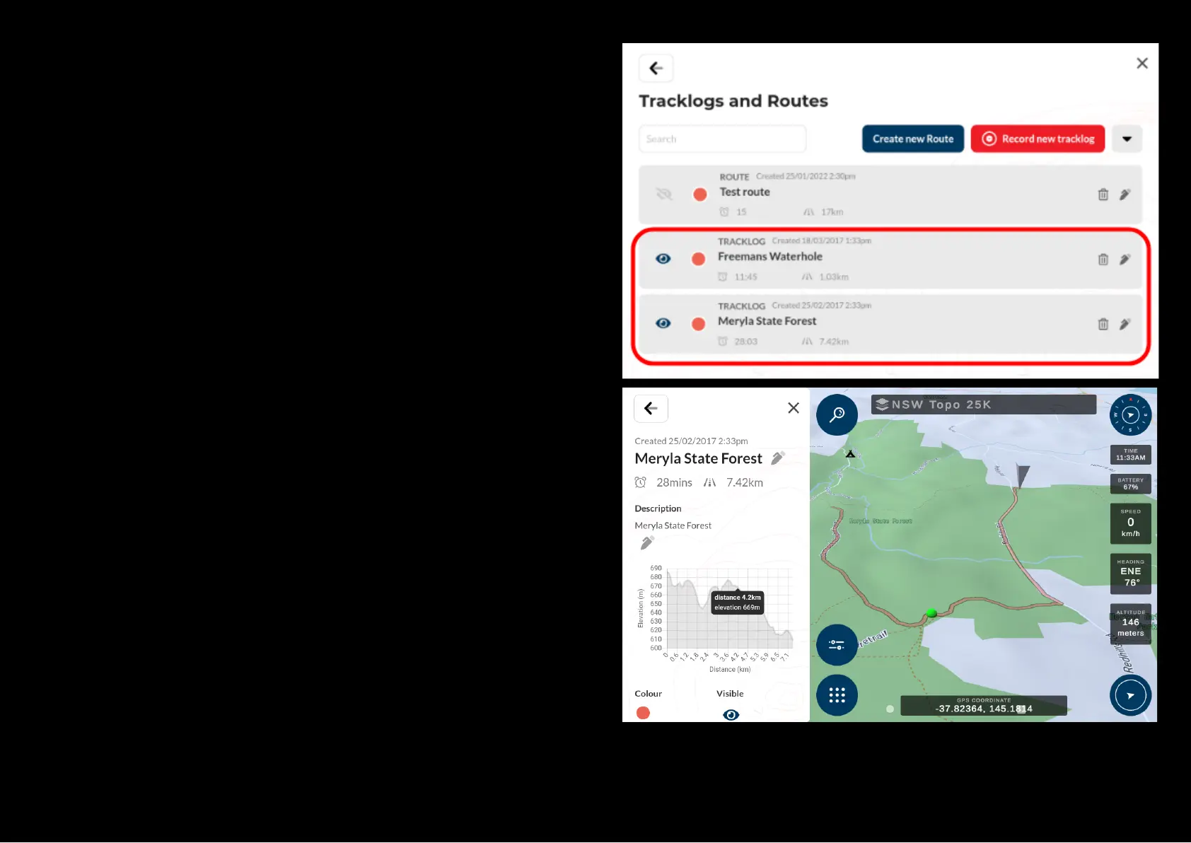 The tracklog menu will bring up a list of all the tracklogs you have created in