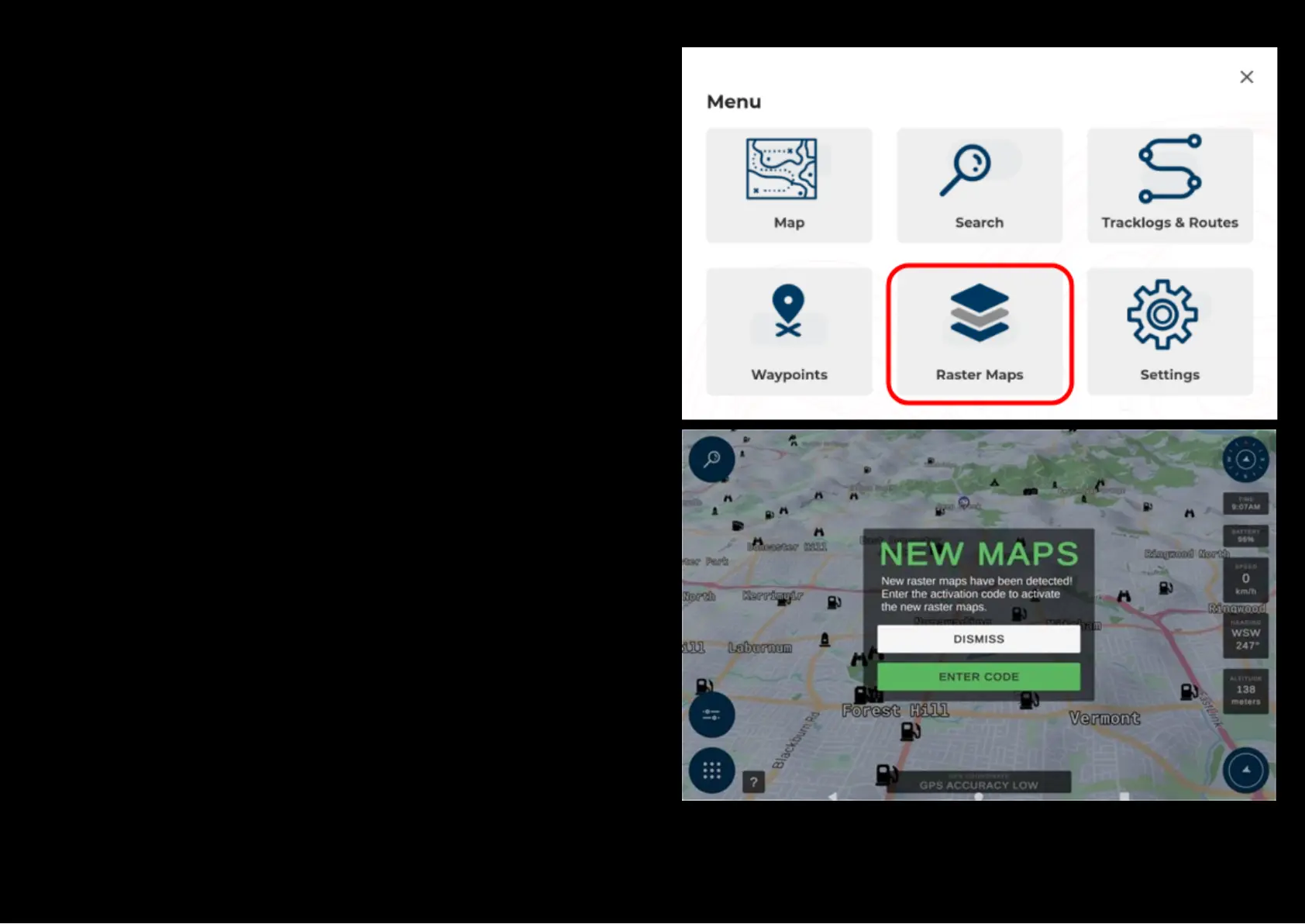 microSD card, press the ‘Raster maps’ button from the main menu.