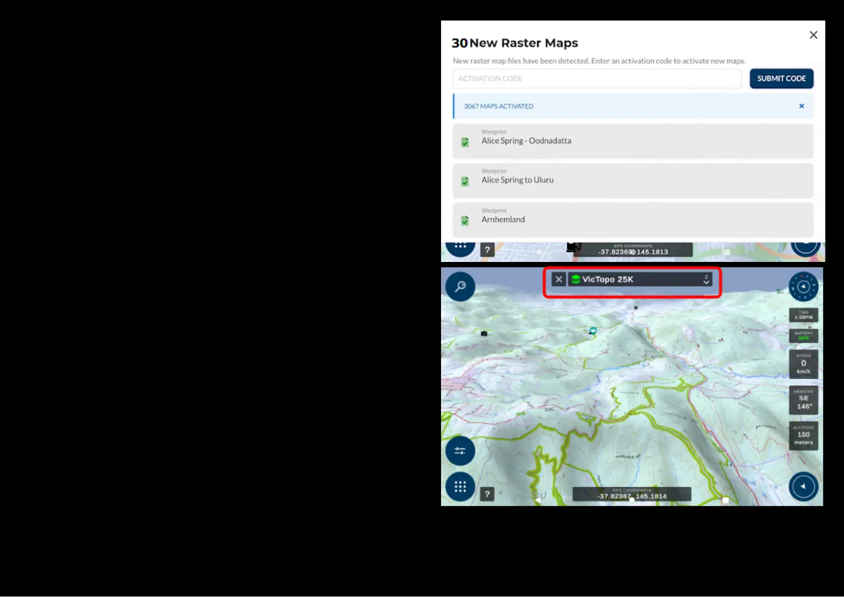 Once you have entered the raster map activation code* you will see that all