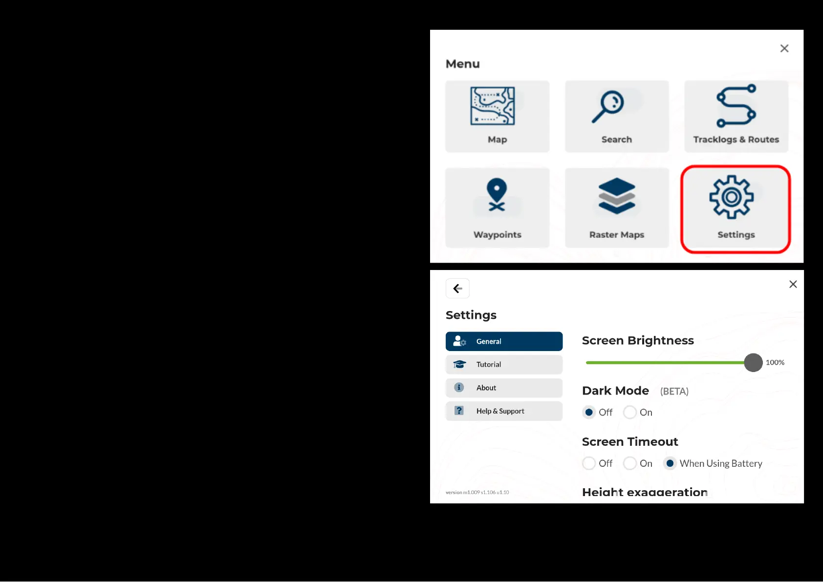 1. Change the screen brightness and 3D Height exaggeration on the