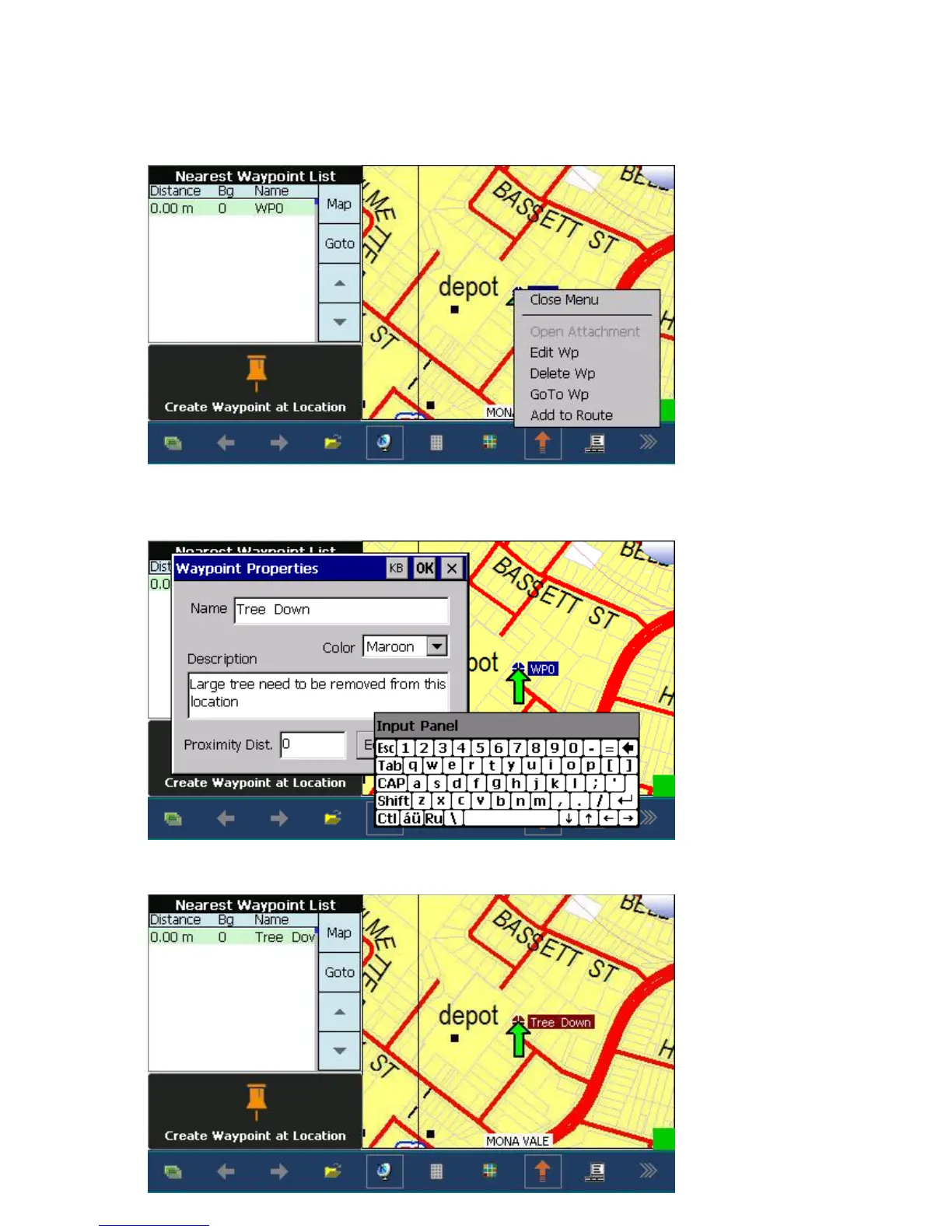 waypoint location icon until a pop-up menu appears:
