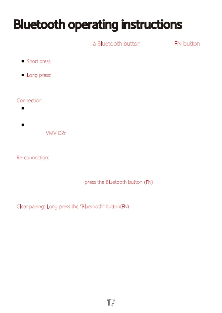 Long press the “Bluetooth" button(FN) on the remote control. After clearing