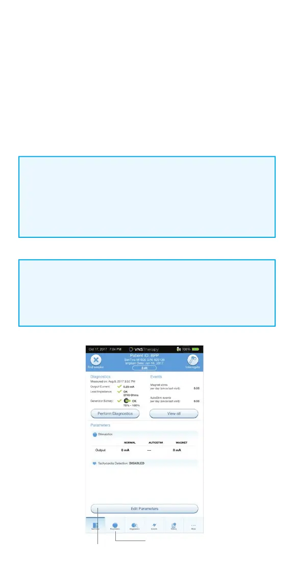 1. From the Summary Screen, tap on the EDIT PARAMETERS button,
