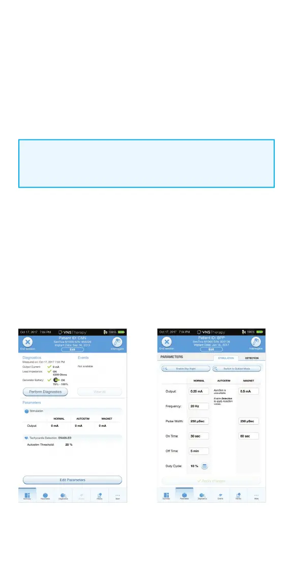 1. From the Summary Screen, tap on the EDIT PARAMETERS button, or tap on