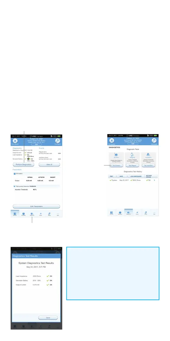 2. On the Diagnostics screen, tap TEST SYSTEM to start the test