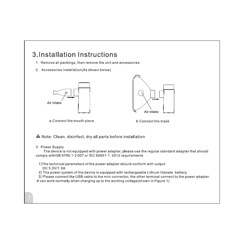 VocalMist Portable Nebulizer - Setup, Operation, and Maintenance; Installation and Power Management