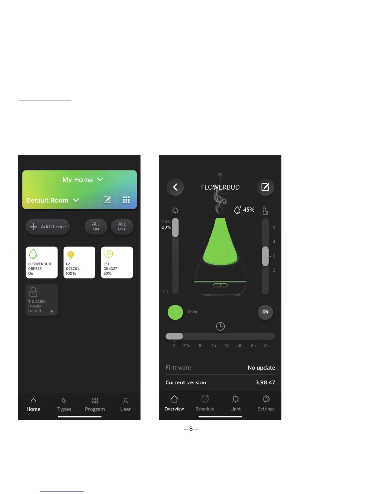 VOCOlinc FLOWERBUD SMART DIFFUSER - Exclusive Features Overview; Home Screen Functionality