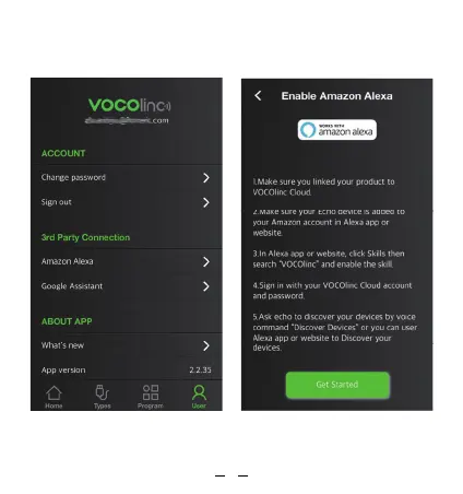 4. Go to User > Amazon Alexa > follow the steps to set up Alexa on the Alexa App