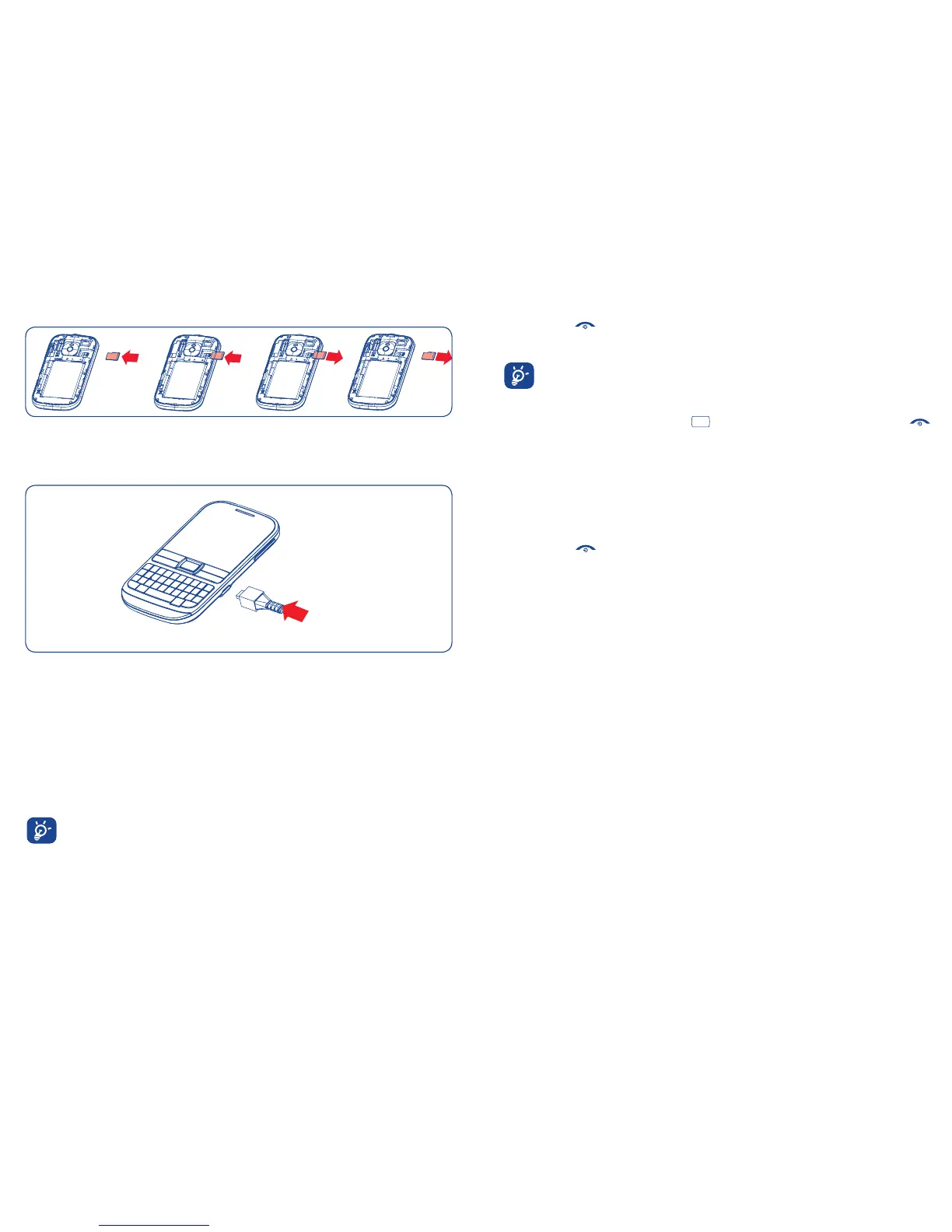 When using your phone for the first time, charge the battery fully (approximately 3 •