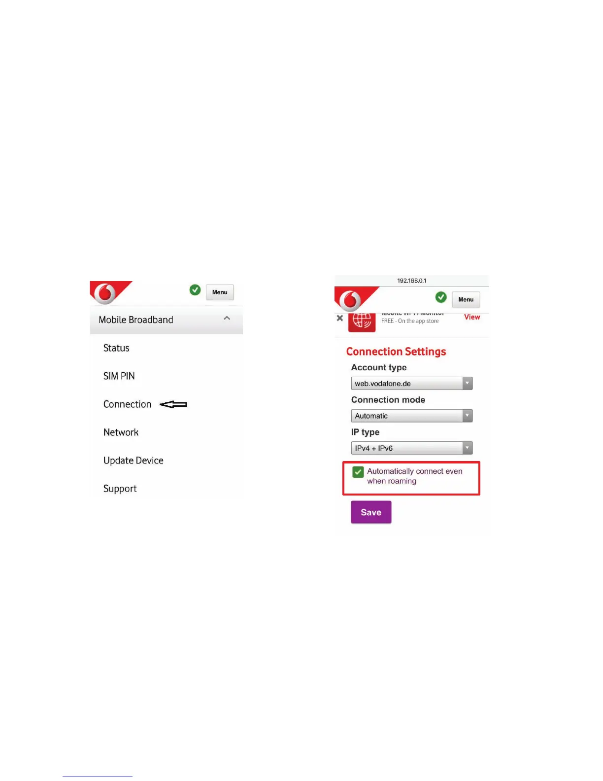 Vodafone R218 - Roaming Configuration; Enable Roaming Connection