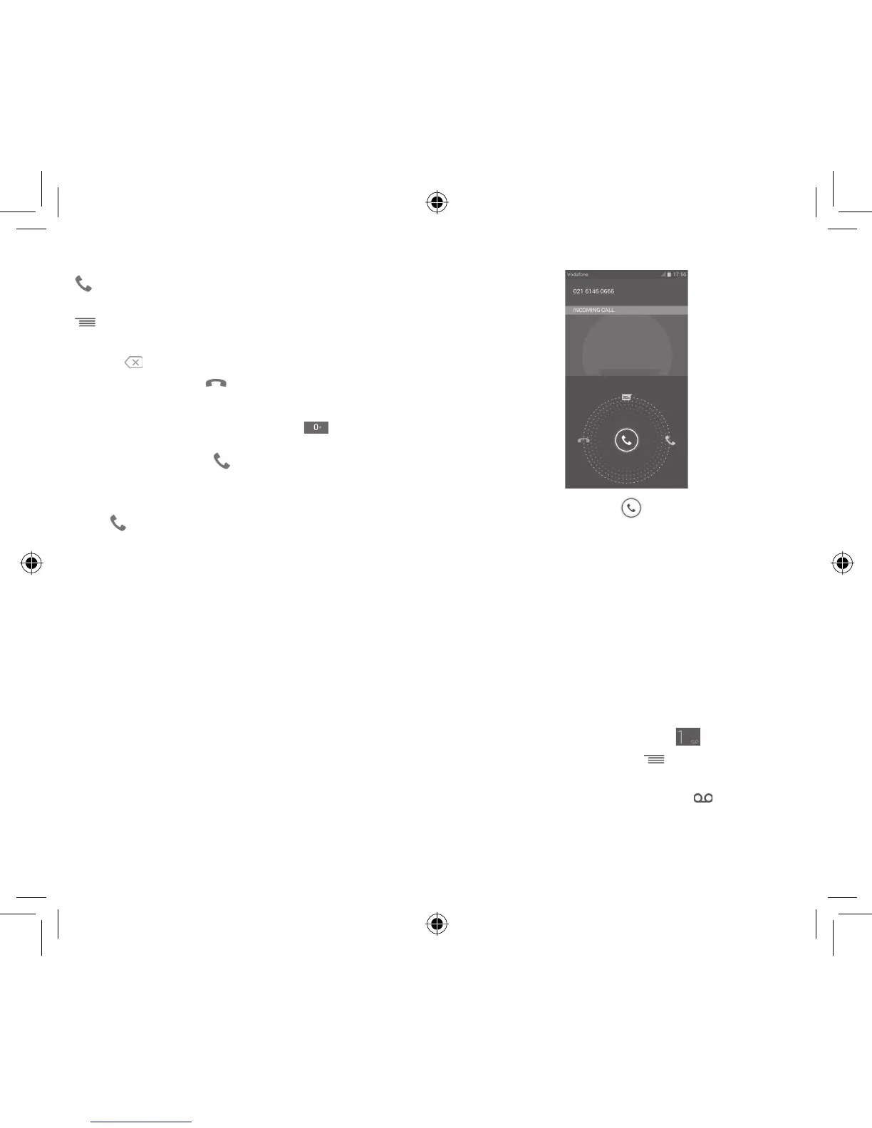Slide the icon right to answer the call;•