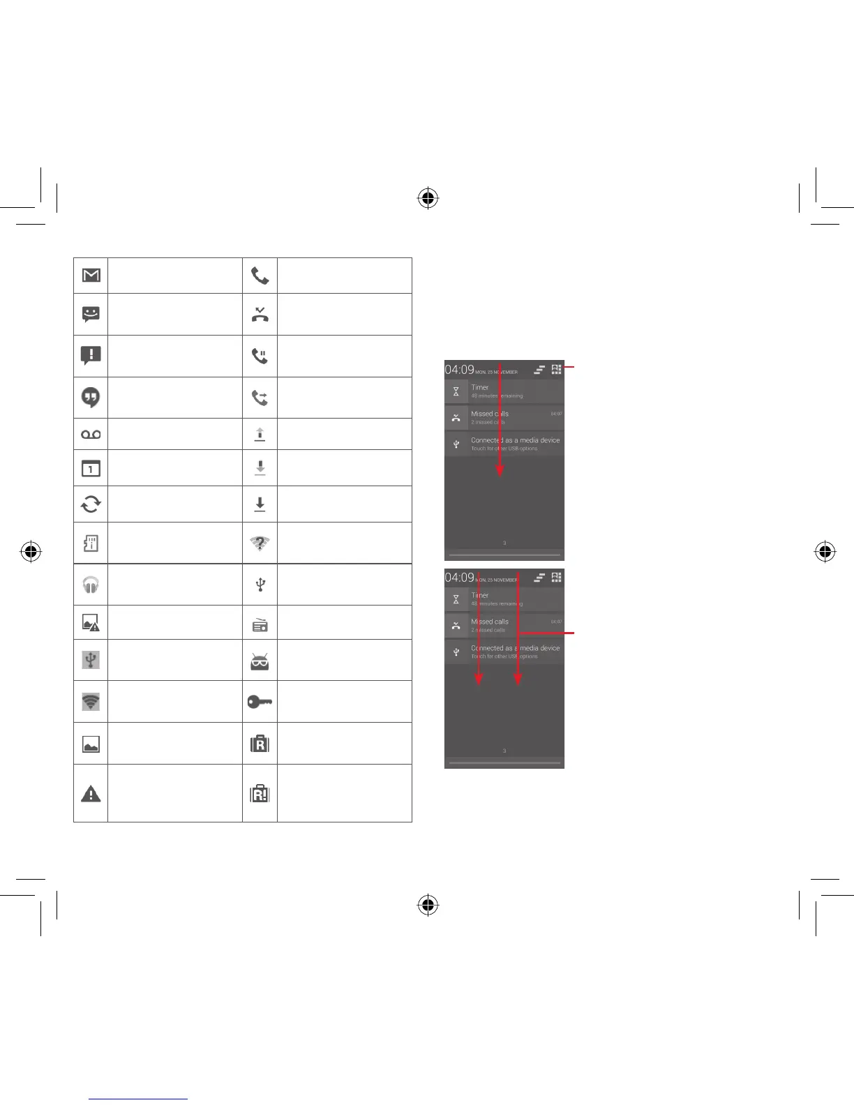 notifications, you may touch and drag the Status bar with two