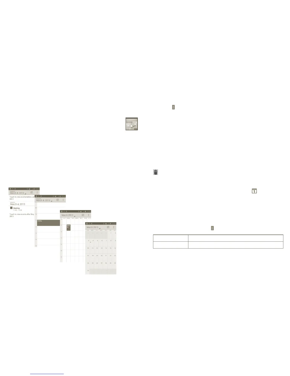 To change your Calendar view, press the Menu key, then touch Day, Week,