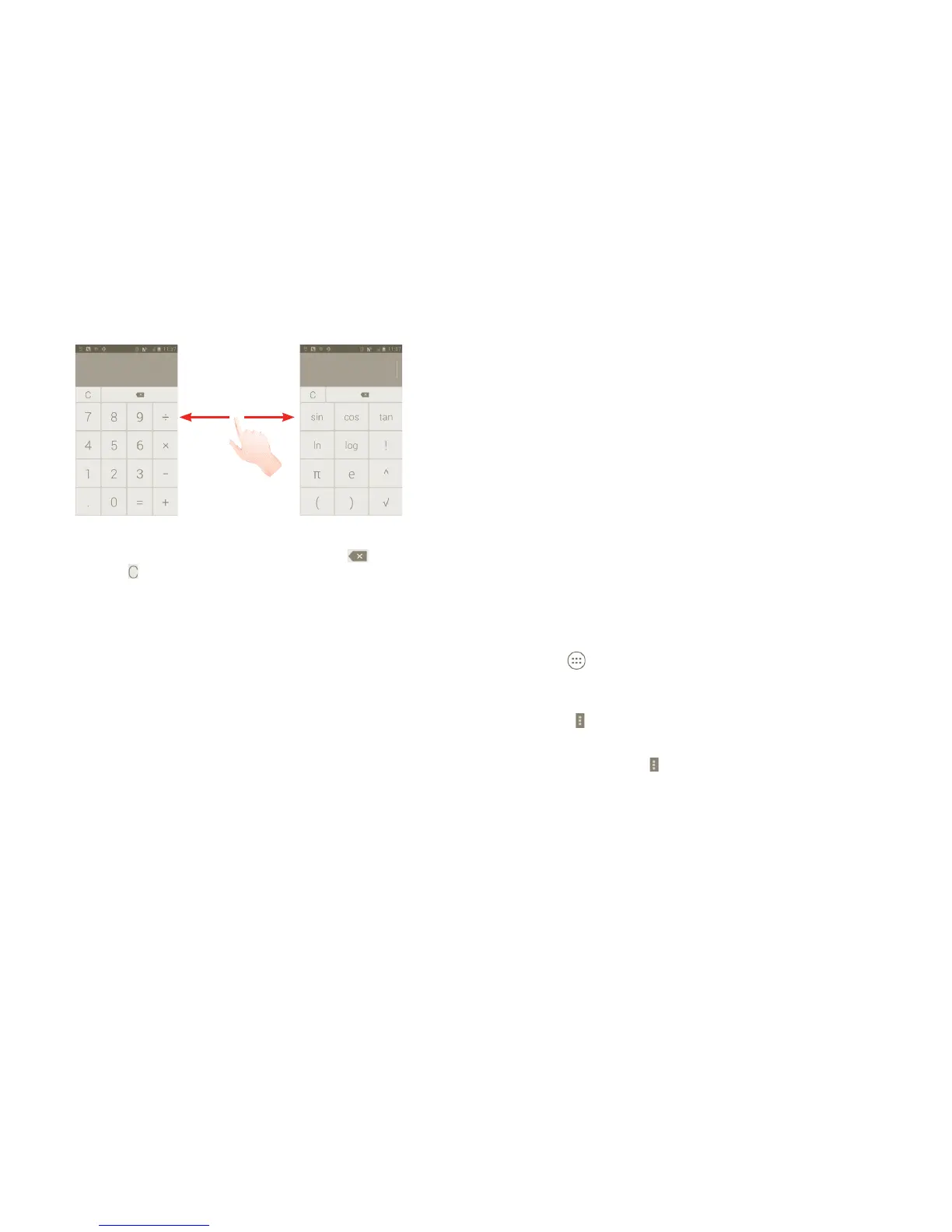 second number, then touch “=” to display the result. Touch to delete digits