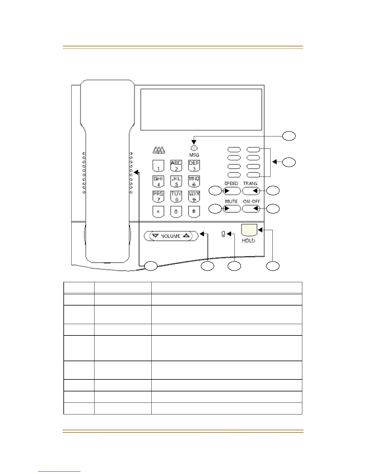6 ON/OFF Key Used to make a call without lifting the handset.