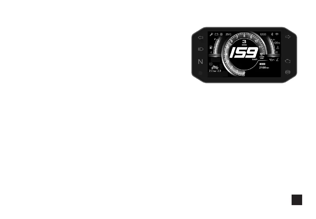 Tire pressure display: When matched with a tire pressure sensor, the meter displays the