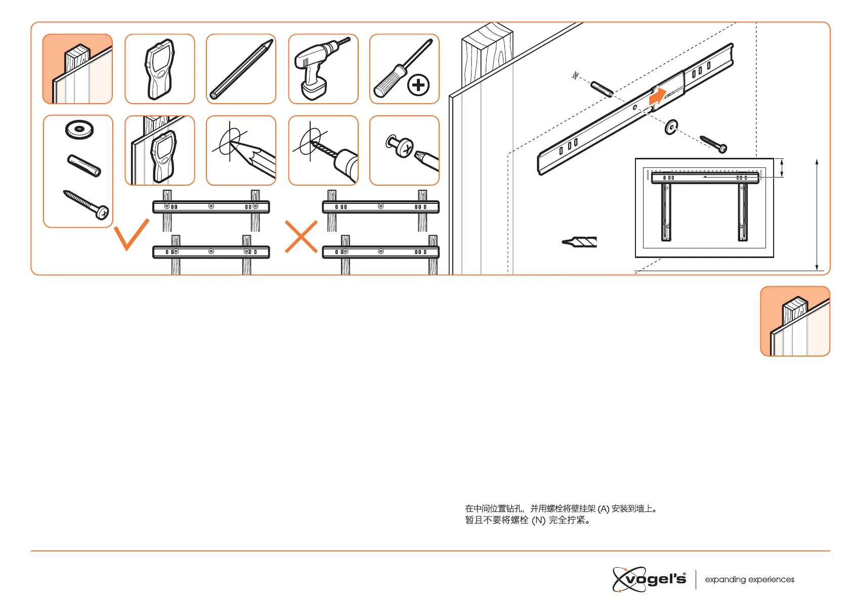 op de wand. Draai de bout N nog niet volledig aan.