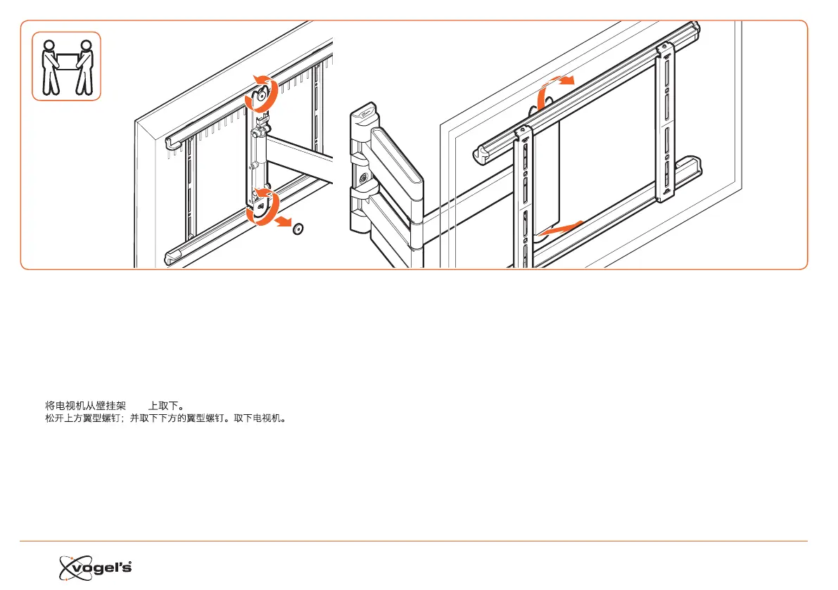 上の蝶ネジを緩め、下の蝶ネジを外す。テレビを取り外す。