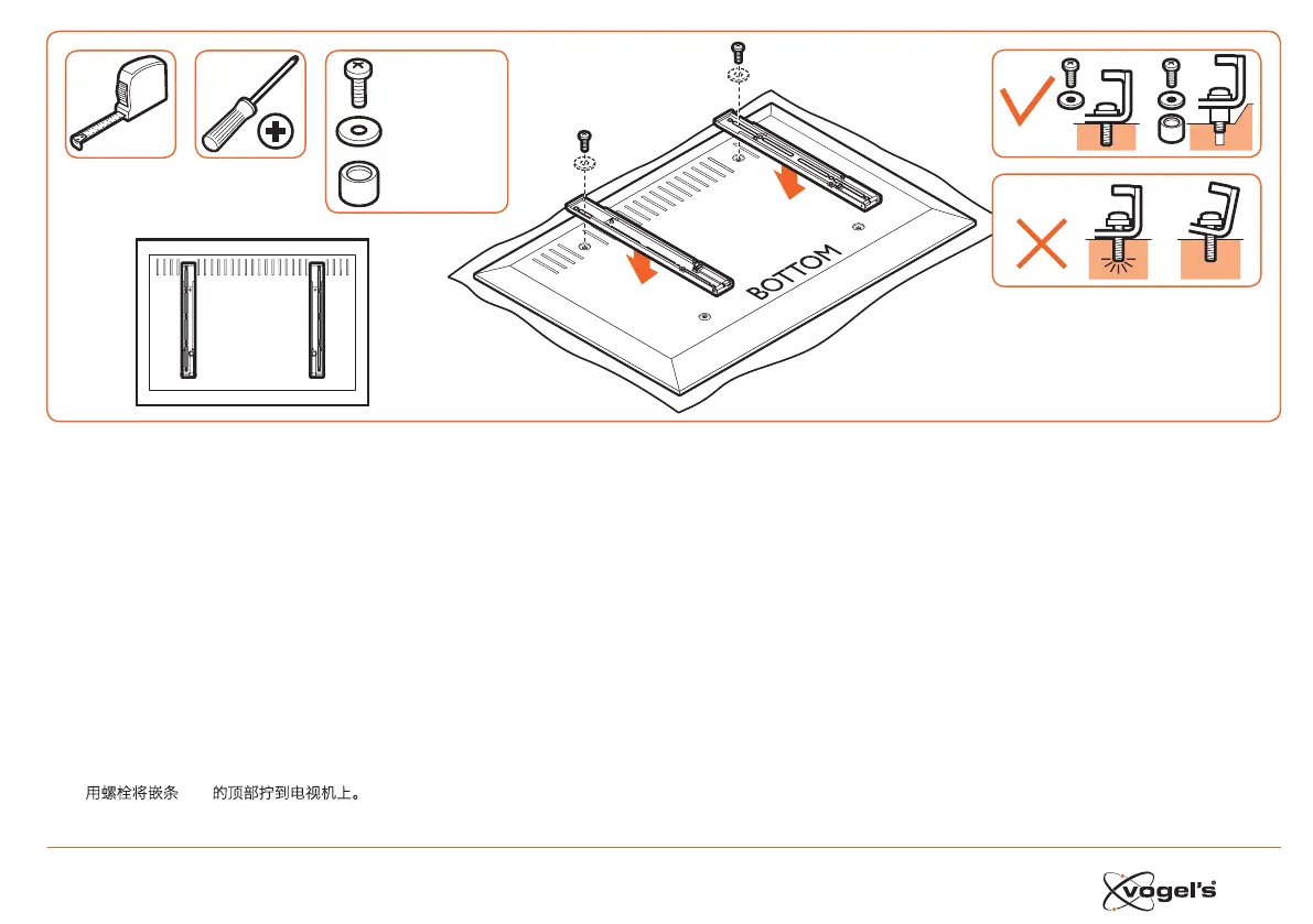 RU - Прикрутите верхнюю часть планок (А) к телевизору.