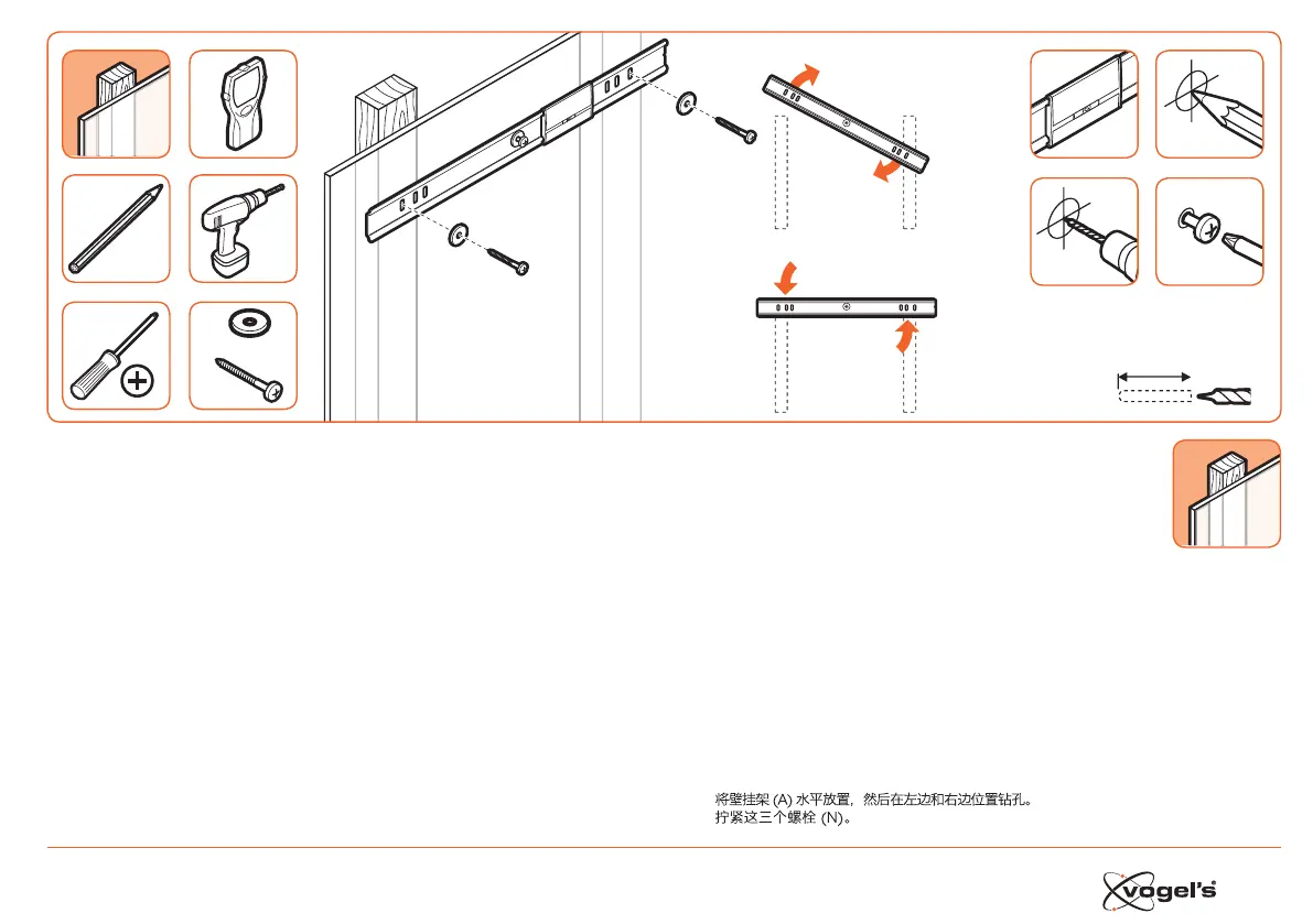 DE - Richten Sie die Wandhalterwaerwaage (A) aus und bohren Sie das linke und das