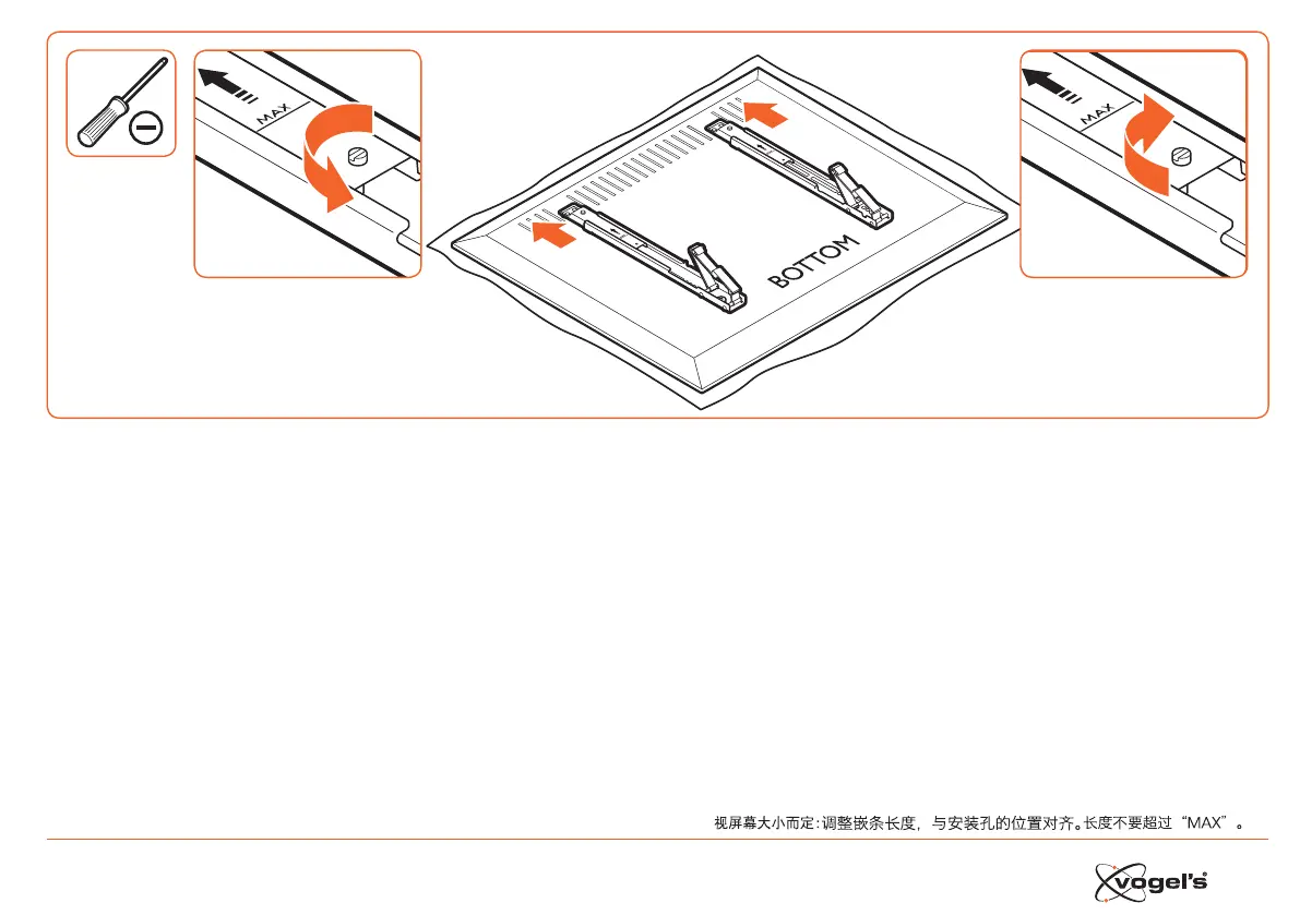 HU - A képernyő méretétől függően: állítsa be a tartólemez hozát, hogy illeszkedjen a
