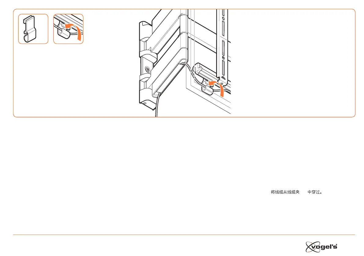 Csúsztaa a kábelrögzítőt (E) az alsó rúdra (D). Fűzze át a kábeleket a bilincsen