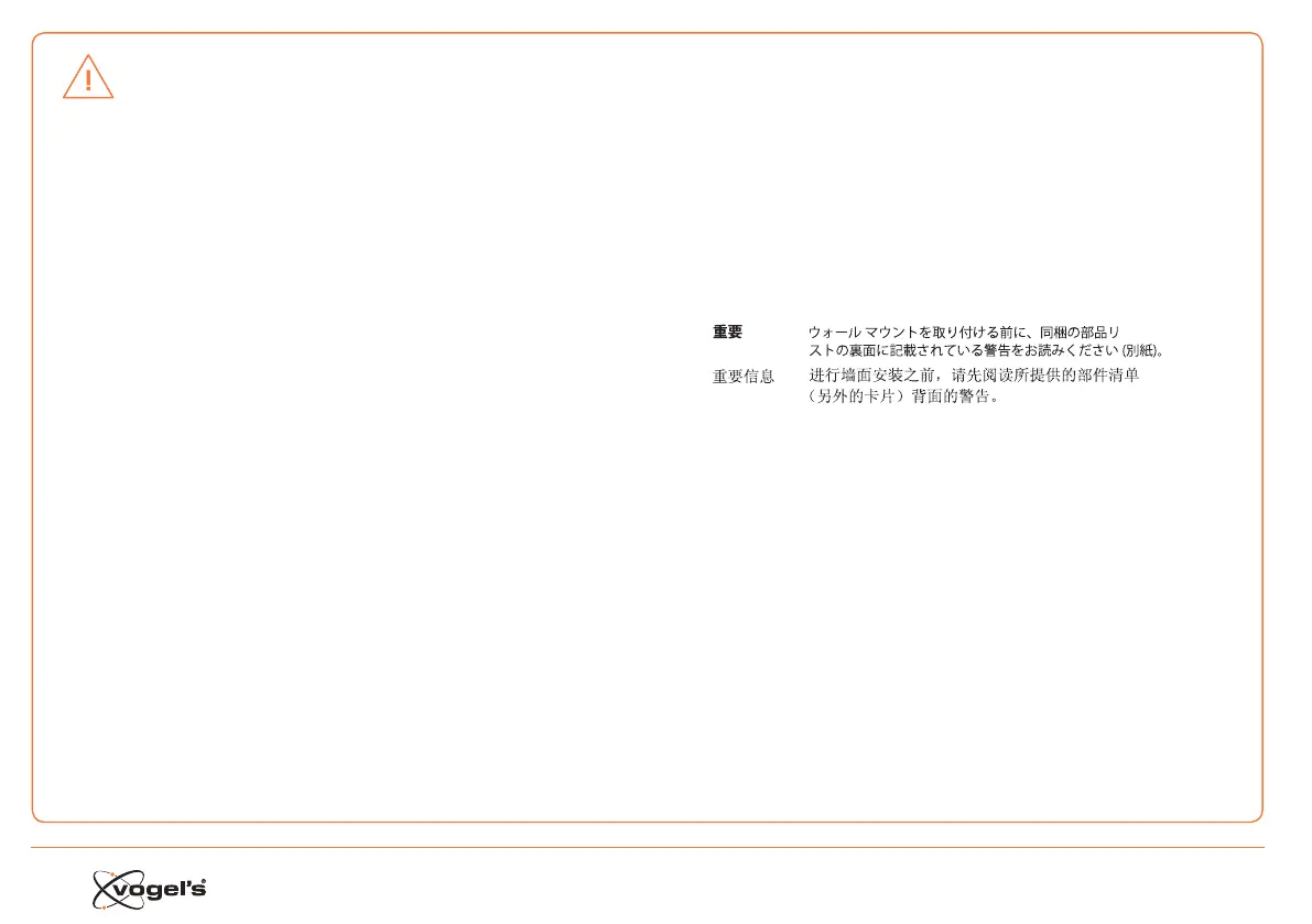 Important Before mounting the wall mount, first read the warnings at the back of the supplied parts list