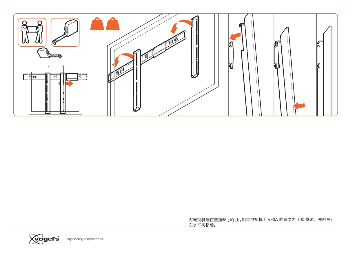 DE - Haken Sie das Fernsehgerät am Wandhalter (A). Wenn die VESA-Breite des Fernseh-
