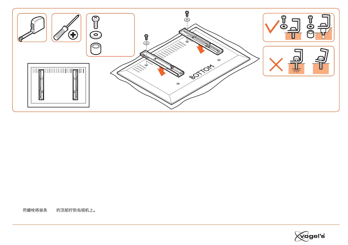 RU - Прикрутите верхнюю часть планок (А) к телевизору.