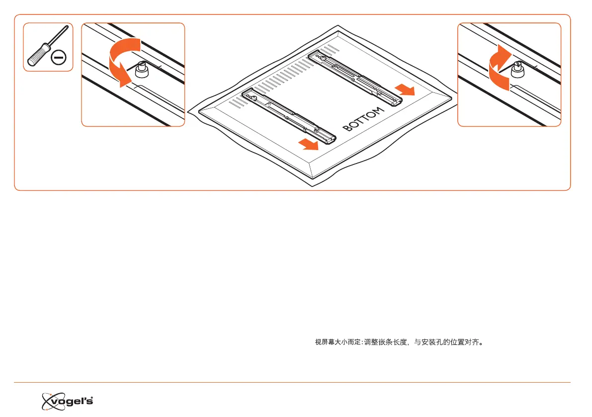 HU - A képernyő méretétől függően: állítsa be a tartólemez hozát, hogy illeszkedjen a