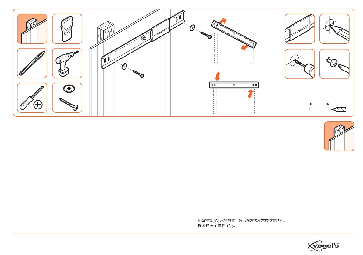 DE - Richten Sie die Wandhalterwaerwaage (A) aus und bohren Sie das linke und das