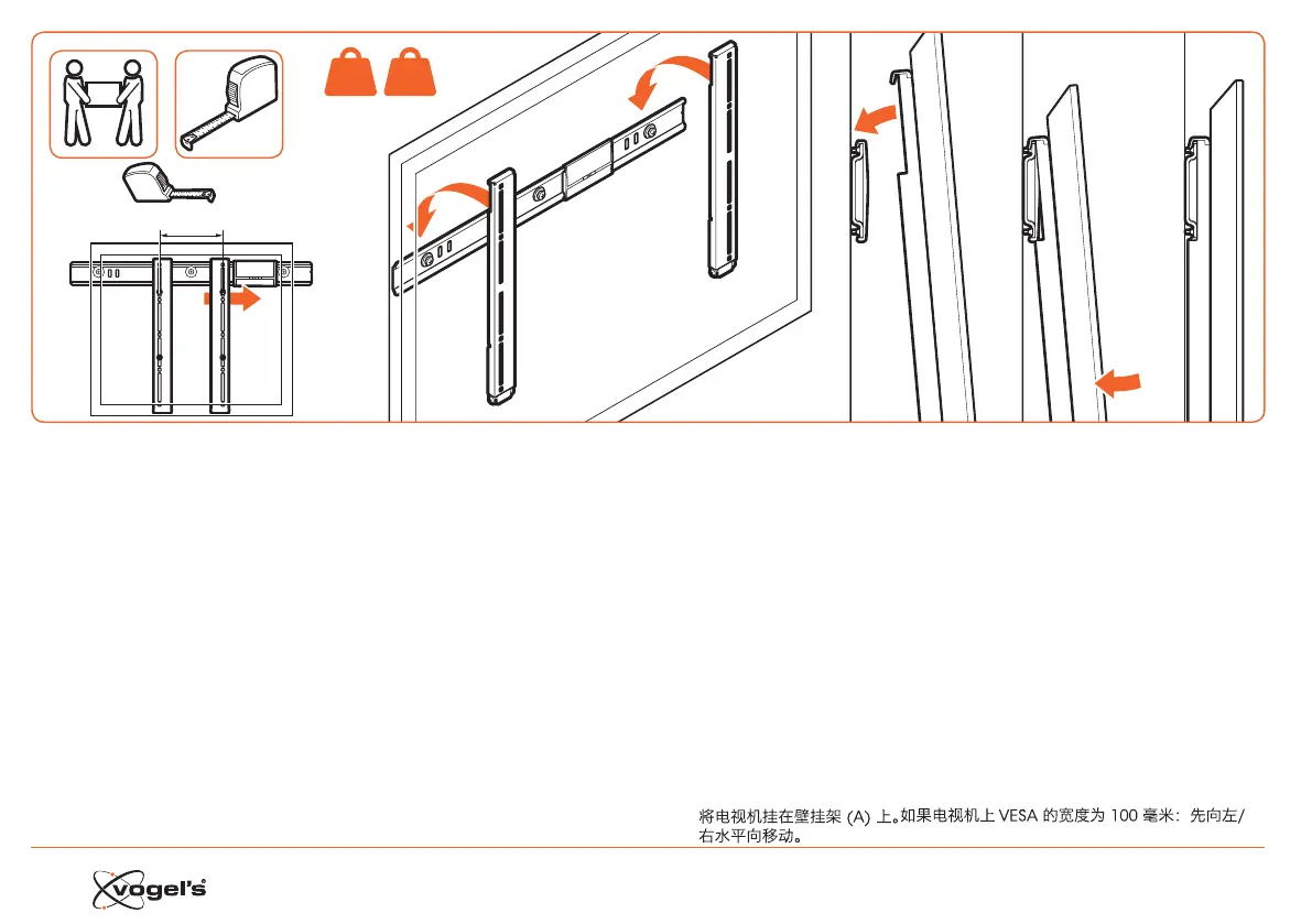 SV - Kroka fa tv:n på väggfäet (A). Om VESA-bredden på tv:n är 100 mm: flya för