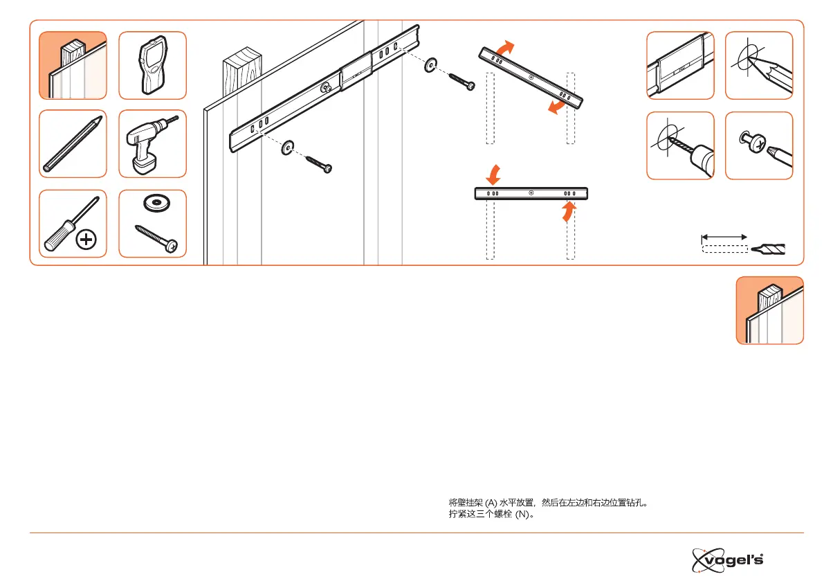 DE - Richten Sie die Wandhalterwaerwaage (A) aus und bohren Sie das linke und das