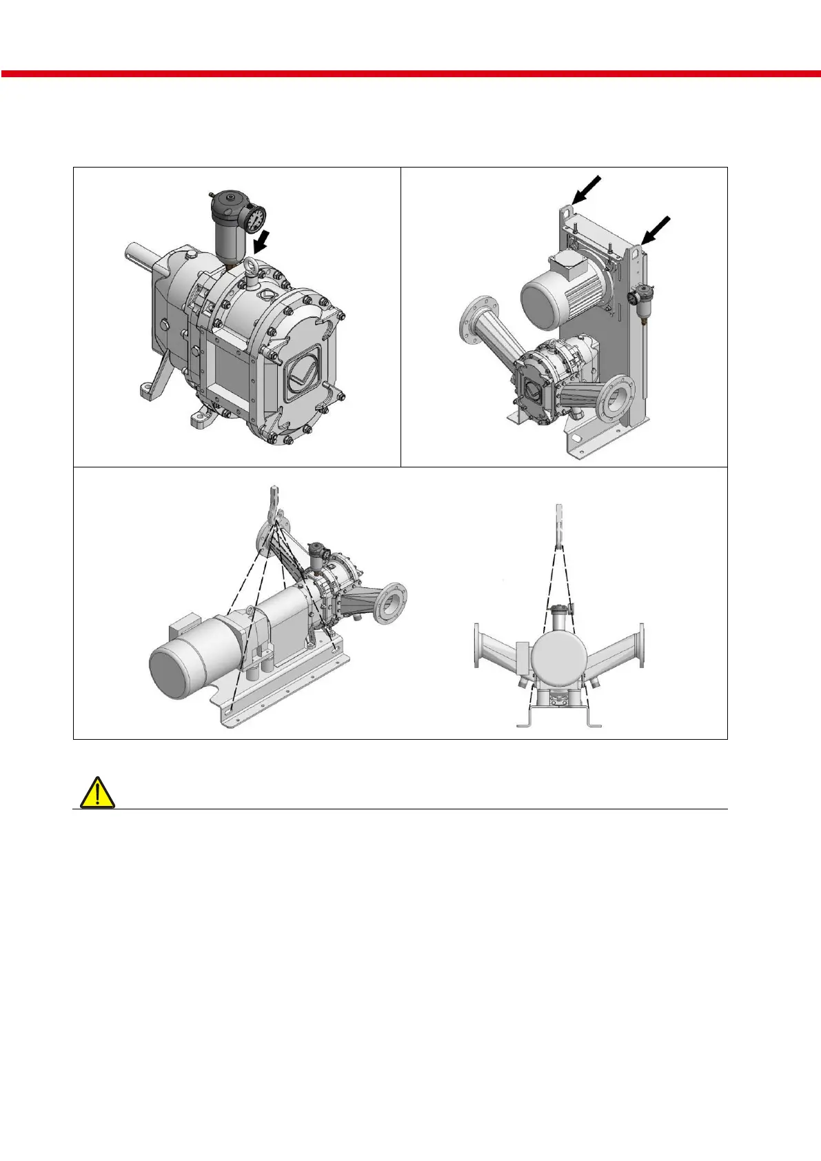 Use the lifting eye bolts and/or lifting lugs fitted for hoisting gear and securely fasten the lifting