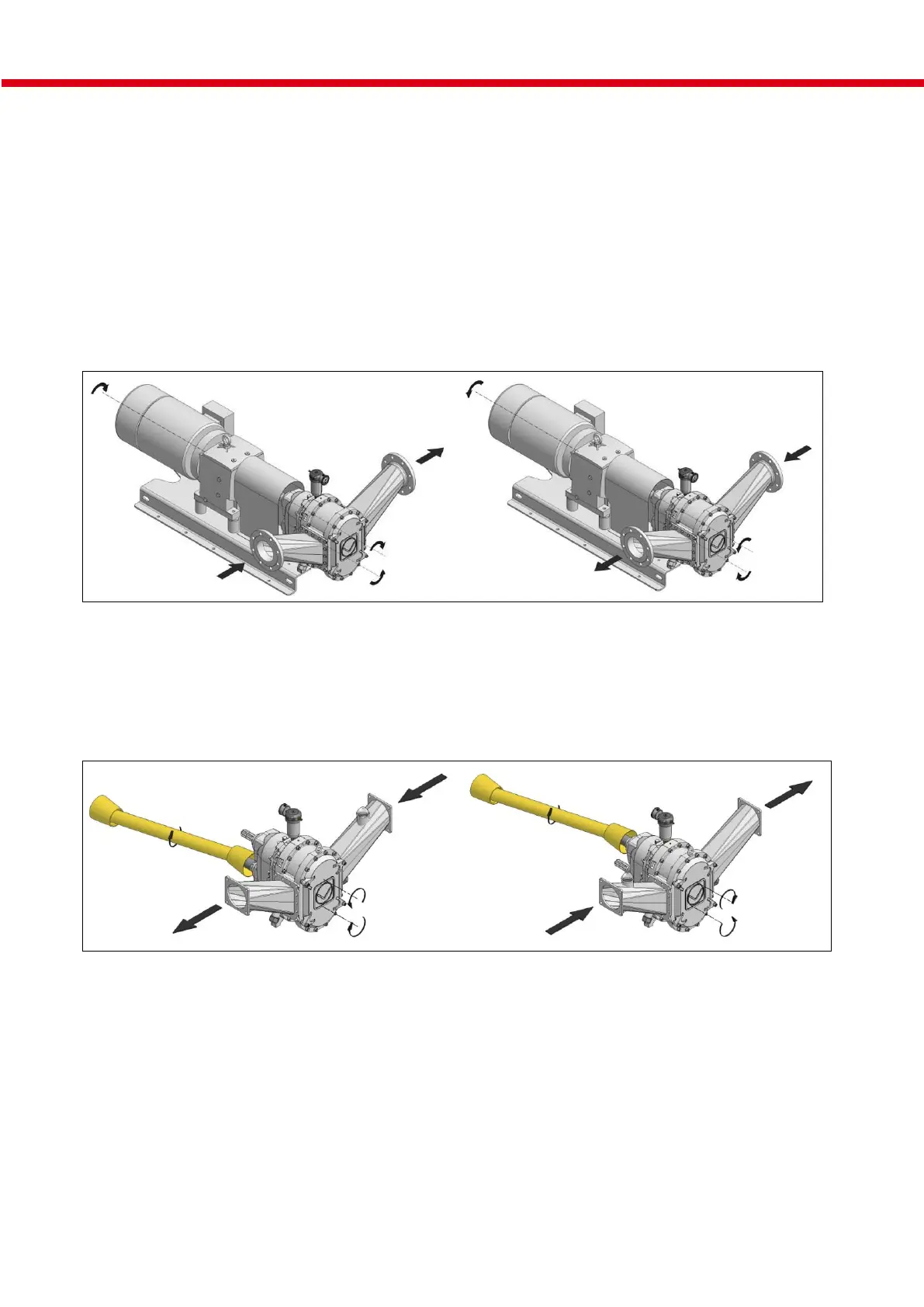 If you are using motor-driven pumps with one drive shaft, the flow direction is selected by determining the