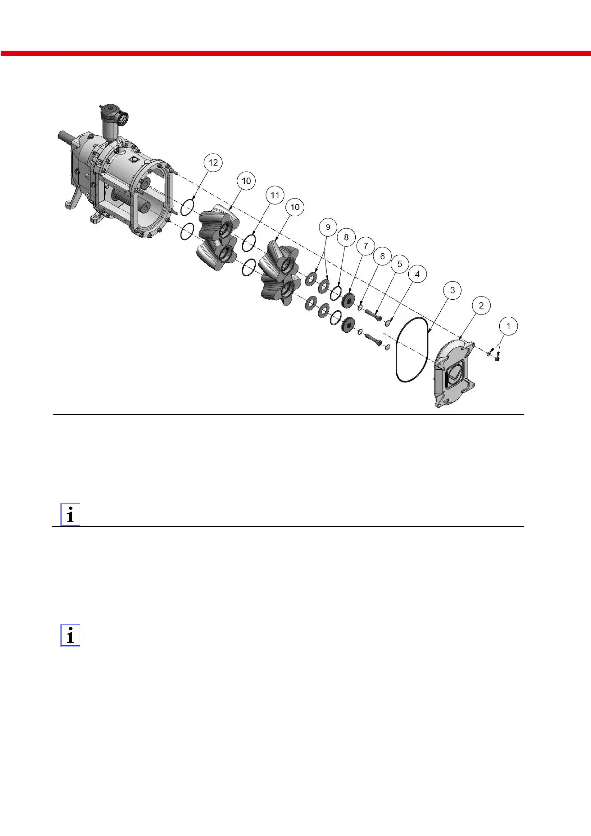 When assembling solid material lobes, fit an O-ring (12) on the gearbox side of each lobe. When installing