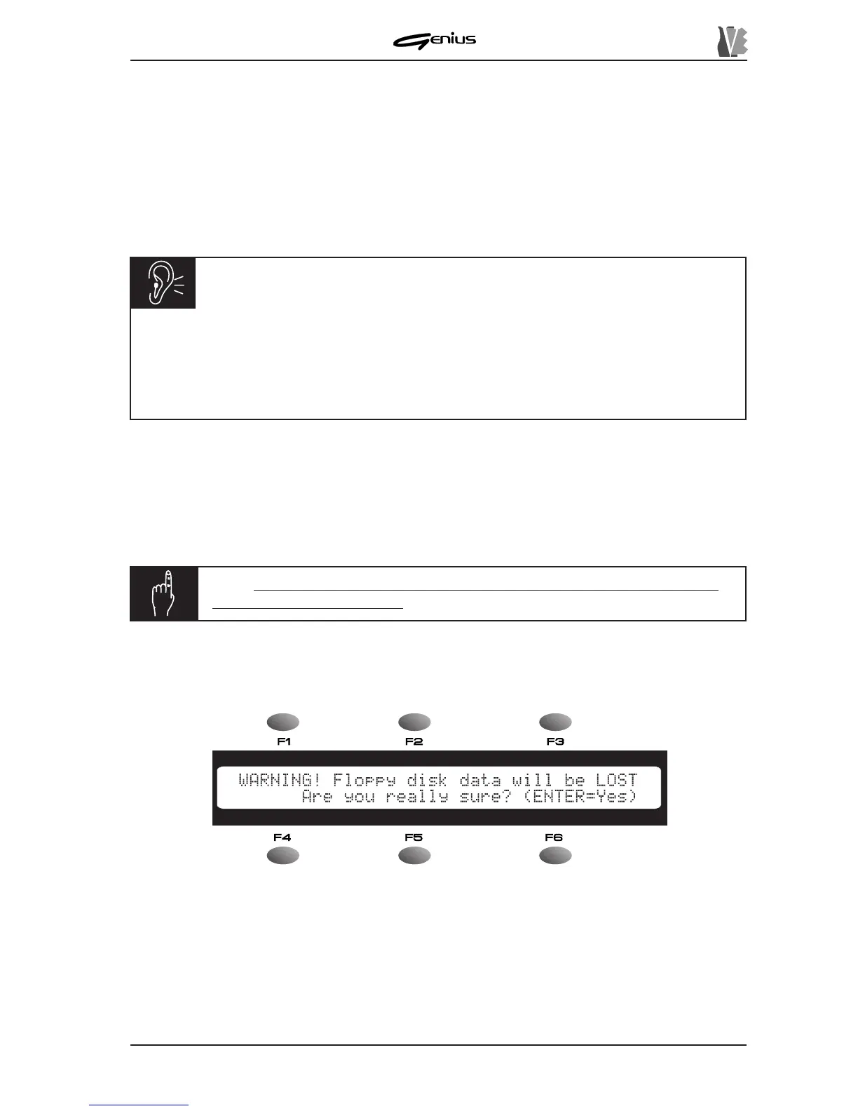 If confirmation is given, the instrument will proceed with formatting of the floppy disk, and a