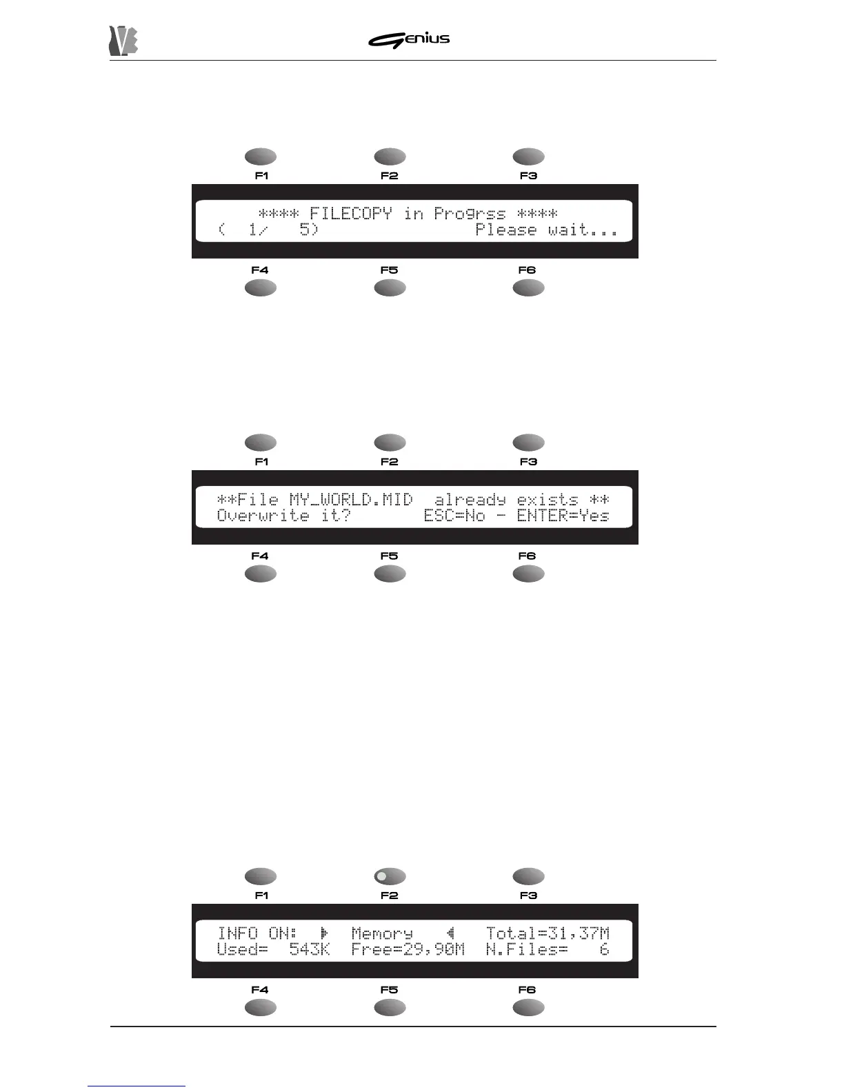 The INFO allows the user to display the main data relating to the internal memory or the floppy