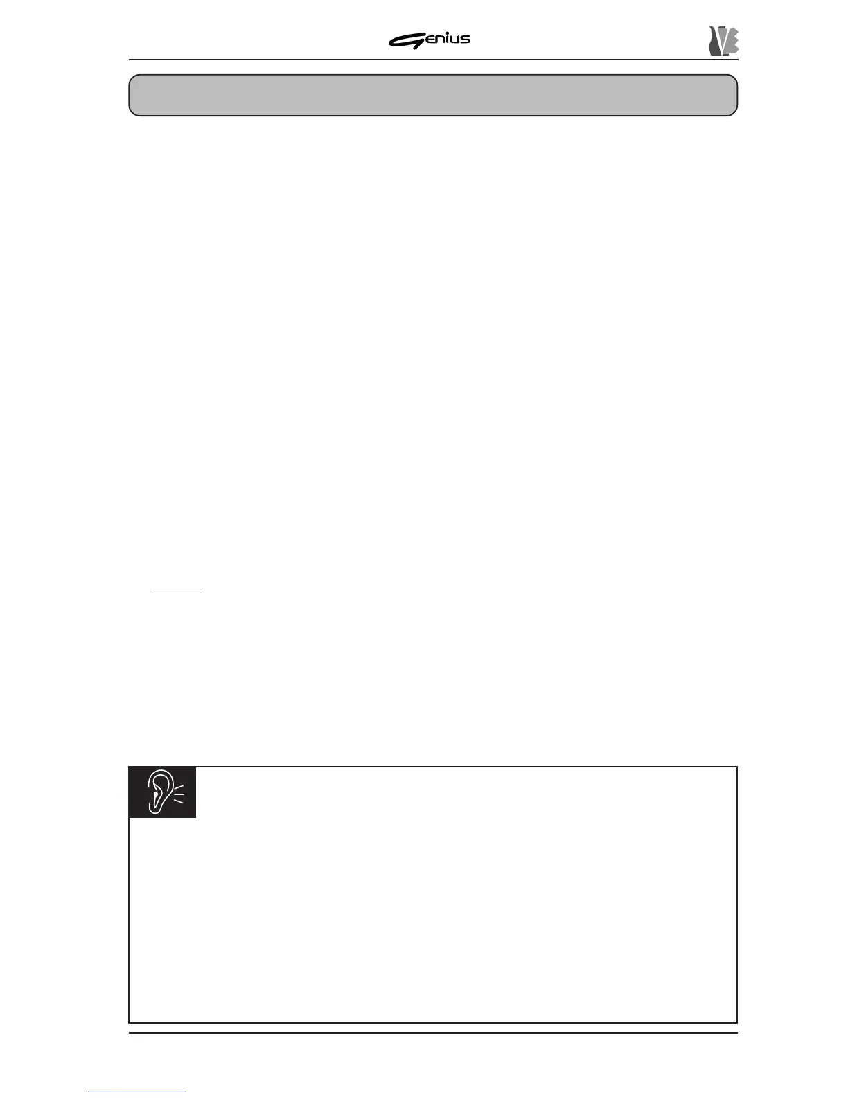 • Do not place the Genius close to heat sources, in damp or dusty places or close to strong