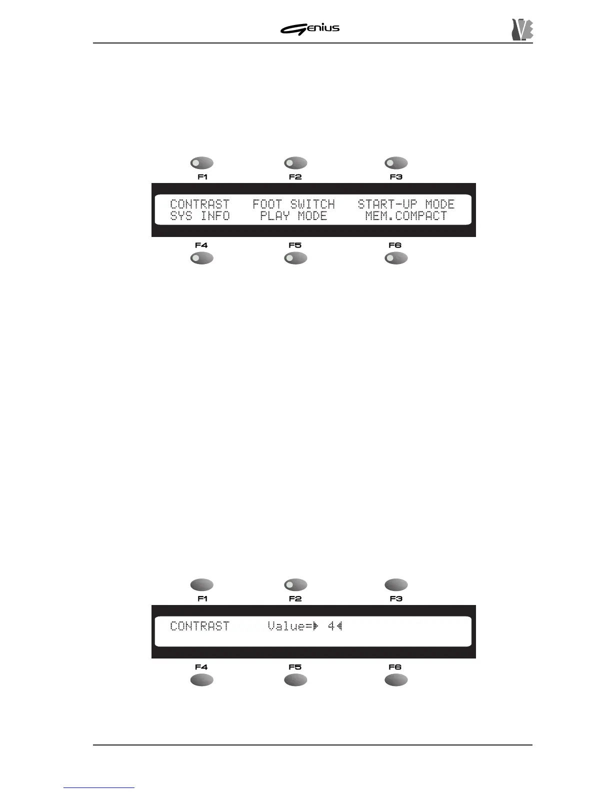 : recalled using the [F1] function key – allows adjustment of the display contrast.