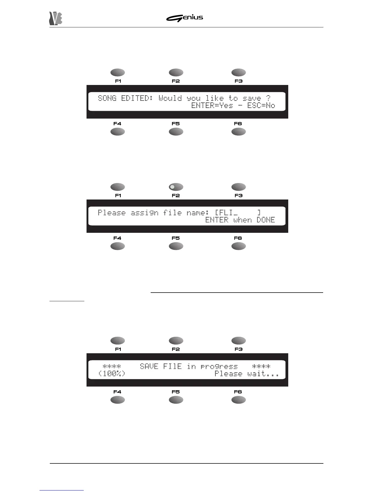 press the [ESC] button. The display will show the prompt to proceed with saving the song.