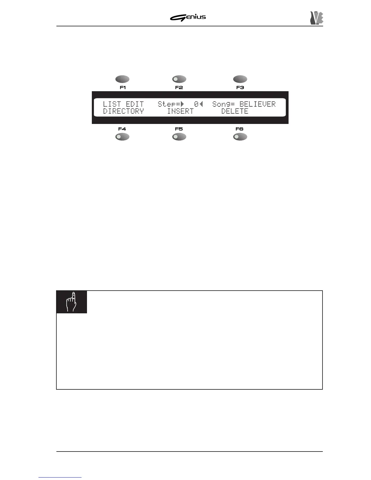 or Floppy Disk): during performance of the List the Genius will automatically change the active